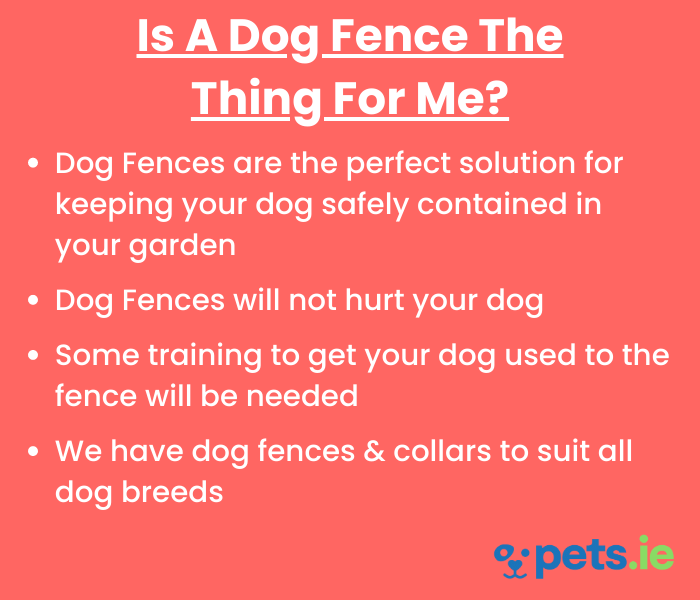 Setting up a dog fence in Ireland is not as hard as it seems. The most effective way to implement this system is to spend time training your dog to use the electric fence. This helps to make sure that your pet understands the concept of the pet fence and learns to stay away from it. This will also help to deter swiftly moving dogs from making a run for it. Furthermore, it will prevent a dog from wearing out the batteries by sitting near the boundary, as they will learn that this is wrong.