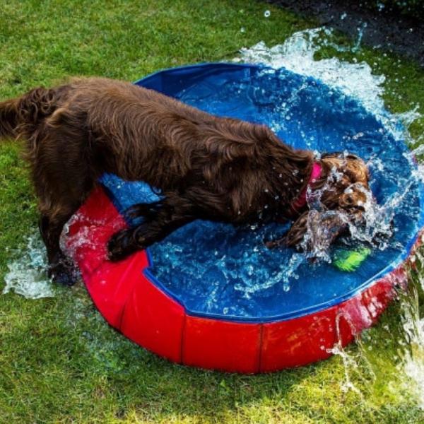 The cooling coat can be plunged into water and wrung out to remove any excess water. It can then be placed on your dog to reduce the risk of overheating. The coat should retain moisture for hours and will make your dog feel cool and not wet.
